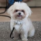 Utilice la correa para mantener el control de su cachorro. Por ejemplo, písela para evitar que salte sobre las visitas que lleguen a casa.